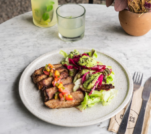 La propuesta gastronómica es más o menos la misma que tenemos en el Cerro. Seguimos con nuestro rico café, una carta de cafés fríos, bebidas frutales (jugos, licuados, smoothies). En cuanto a comidas tenemos lo mismo que en el Cerro y un poquito más. Aquí contamos con un espacio más amplio y todavía estamos en un proceso de afianzar la carta, pero vamos a ir sumando más propuestas a la minuta y algo más para acompañar el vermucito a la tarde.