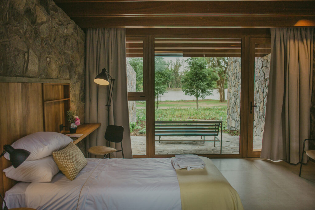 Se trata de seis habitaciones separadas por paredes de piedra inspiradas en las antiguas pircas rurales, donde conviven materiales orgánicos con una decoración de estilo contemporáneo.