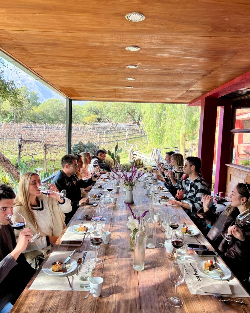 Y, en ese trabajo en la tierra, Aráoz fue encontrando otras vetas en el rubro del turismo, la hospitalidad y la gastronomía. Una de ella es la de desarrollar una bodega y comenzar a producir su propio vino: «El viñedo surgió porque a los dos siempre nos gustó el vino. Al conocer otros dos proyectos que estaban en la zona, dijimos ‘¿Y si hacemos nuestro propio vino?’. Somos personas que disfrutamos del hacer, no nos focalizamos en el resultado; valoramos mucho los procesos, lo que se va transitando, pensar lo que hacés, preguntarte, equivocarse, aprender».