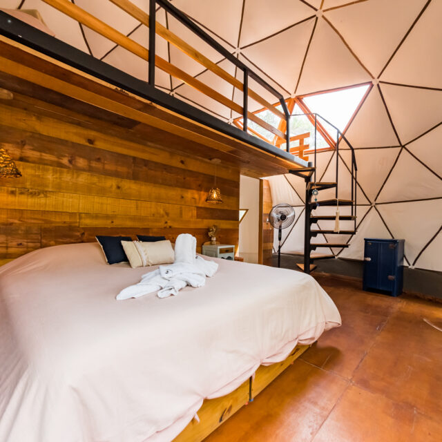 Las Salinas Domos- Glamping. En el único desierto de sal de Córdoba, en Las Salinas Grandes, se ubica este complejo de domos que invita a vivir una experiencia completamente distinta. Ofrece tres domos para hasta cuatro personas, con sommier twin size, pensado para grupos de amigos, o para parejas en sommier super king size. Cada domo está equipado con una minispiscina con jets de hidromasaje y deck privado. También posee baño privado completo con bidet y ducha, amenities, batas y toallas, sábanas de percal de algodón, jarra eléctrica, WiFi, aire acondicionado frío/calor, aislación térmica de última generación, ventanas de PVC con doble vidriado hermético. Y se destaca su gastronomía en su propio restaurante Palo Azul, a cargo del chef Bernardo Cadamuro, que ofrece sabores regionales fusionados con cocina gourmet. Tarifas: la opción doble cuesta $595.000, la triple $810.000 y la cuádruple $990.000. Tiene todos los servicios incluidos (bebidas sin alcohol y cervezas incluidas durante toda la estadìa. Vinos con cargo). Web: www.salinasdomos.com. WhatsApp: 3525 478967.