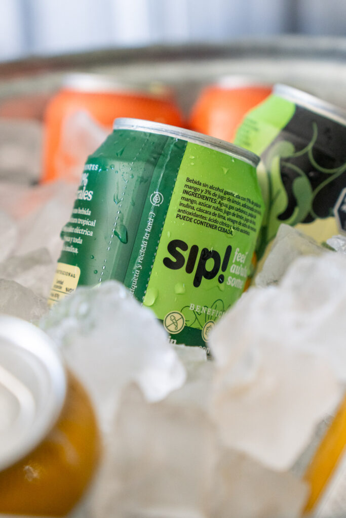 Sip! viene en dos variedades: hibiscus, frutilla y naranja y mango y lima limón. En la primera, se destaca ese toque floral de hibiscus, la frescura de la naranja y la dulzura de la frutilla. En la segunda, el sabor del mango maduro que en combinación con el limón remite a una tarde de playa.