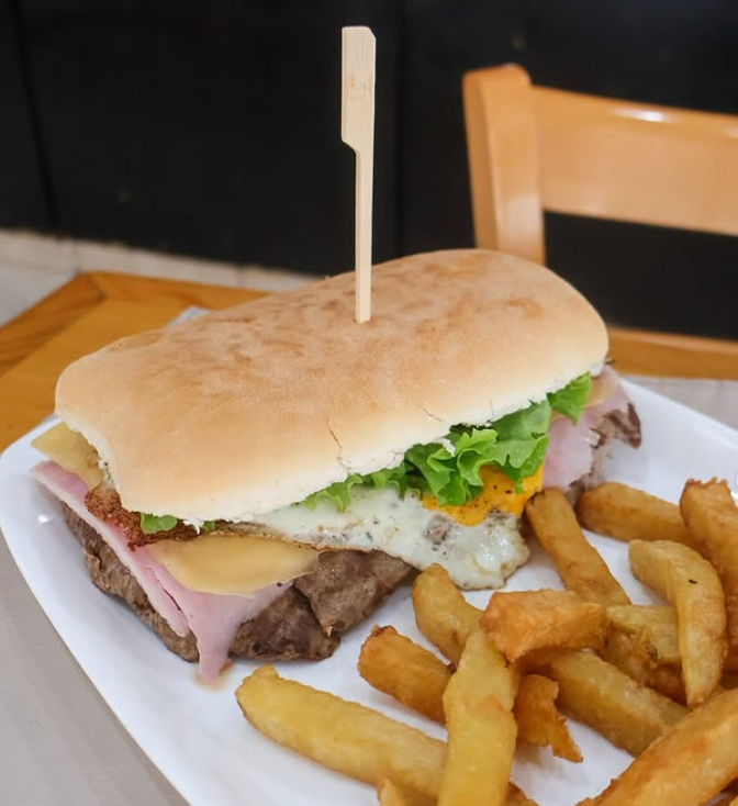 -El lomito completo clásico: si hablamos de tradición, el lomito de la casa no puede faltar. Pan suave, carne jugosa, huevo, jamón, queso, lechuga y tomate. No por nada es un símbolo del local.
