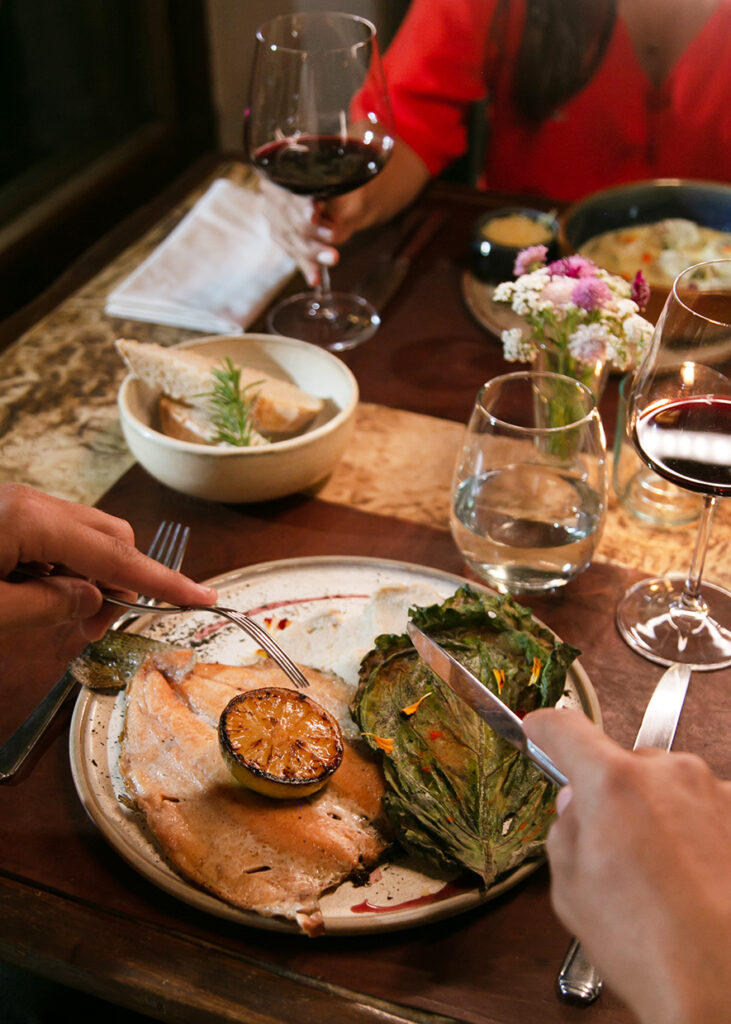 Un encuentro al caer el sol con copa en mano, degustando sus vinos orgánicos-biodinámicos junto a una tabla de charcutería artesanal y pan de masa madre. Se realiza en su restaurante.