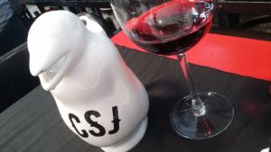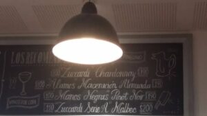 La carta tiene una propuesta de vinos interesante, todos de gama media y alta. También ofrece algunos vinos por copa y, una muy buena opción, pingüinos de 375 cc. Elegimos un pingüino de Manos Negras Pinot Noire.