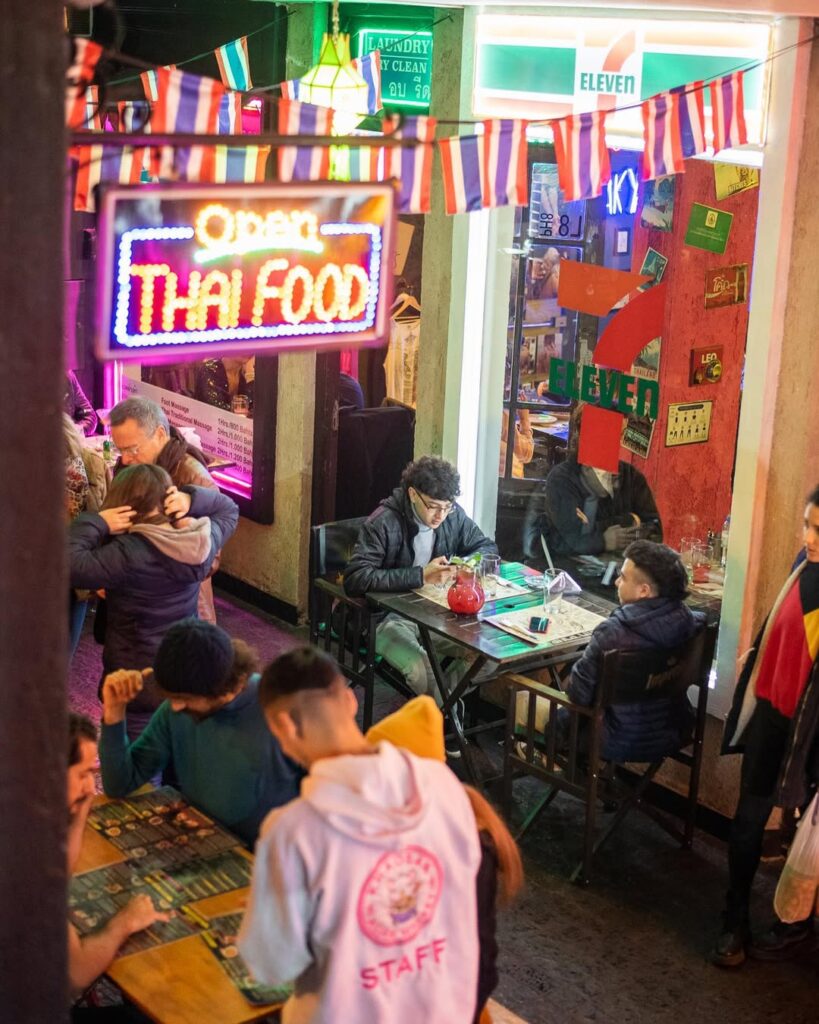 Khaosan Thai Food es un restaurante tailandés especializado en los auténticos sabores del sudeste asiático. Está ubicado en el la ciudad de Córdoba, en el corazón de la pintoresca galería Tiempo Atrás de barrio Güemes. Cuenta con patio, zona techada y dos salones: uno ambientado como restaurante tailandés tradicional, y el otro con fachadas de locales callejeros de Bangkok.