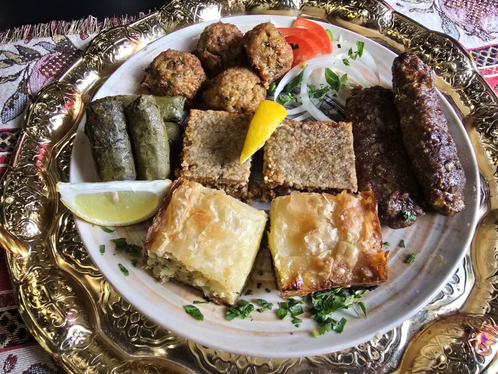 La picada de Armenian Original Food es un viaje por todos los sabores de su carta: hummus de garbanzo, hummus de zanahoria, puré de berenjena, tabule y empanadas árabes. Pero esto es sólo el arranque. La segunda parte viene con keppe, kebab, pasha berek, falafel, niños envueltos y ensalada Belén. Todo se puede repetir cuantas veces se desee, siempre que se terminen los platos para evitar el desperdicio de comida.