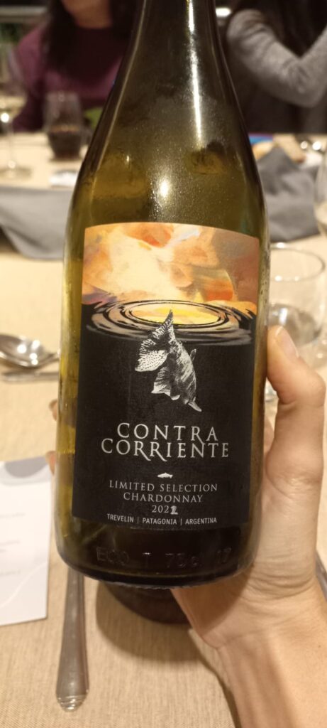 Acompañaron el maridaje un Chardonnay de Contra Corriente, bodega ubicada en Trevelin, un Pinot Noir que me encanta de bodega Nant y Fall también de Trevelin y finalizamos con un Malbec de Bardas al Sur, con origen en Gaiman.