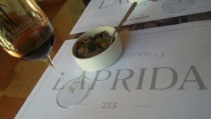 Con la presencia de Ana Amitrano, gerente general de la bodega, el pasado miércoles se realizó el evento presentación de Gran Alambrado en Córdoba. Tuvo lugar en el restó Laprida, donde periodistas y especialistas en vinos y gastronomía disfrutamos de un exquisito almuerzo que incluyó variedad de platillos: empanaditas criollas en masa casera, hongos en escabeche, deep de quesos y finas hierbas, cazuela de cordero al curry, humita, chorizo de nutria, mollejas de cabrito (foto), panceta a la mostaza con puré de batatas y relish, entraña a la criolla y pannacota como toque dulce del encuentro.